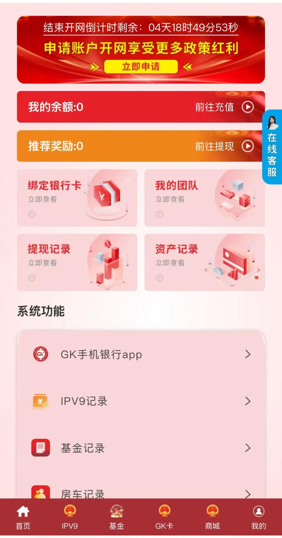 暂时加不了群聊,并不影响软件的使用。小雪指导记者在“国网”中进行充值,称其为9月刚开的新平台,第一波进来福利很大。“开网支付490元,后续每天签到可领10元,直到永久。49天回本,以后都是赚的,限前10万名额。”另外赠送10000股权,以后上市可以分红或者交易。还有一张GK卡邮寄到家,出国能当护照,坐飞机火车享受半价。